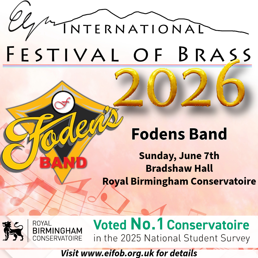 On the 7th June Foden's look forward to performing in the prestigious 'Elgar International Festival of Brass' at the Royal Birmingham Conservatoire The Festival will also include performances from Black Dyke, Flowers, Brassband Willebroek, Royal Birmingham Conservatoire Band as well as a recital from the fantastic David Childs Foden's programme will feature John Barber (who recently celebrated his 30th year with the band!) PROGRAMME Tallis Variations - Sparke Concertino for Trombone - Larsson Soloist : John Barber Sounds - Golland Antiphonary – Lane Orbital – Blackwood Further info via https://www.eifob.org.uk/
