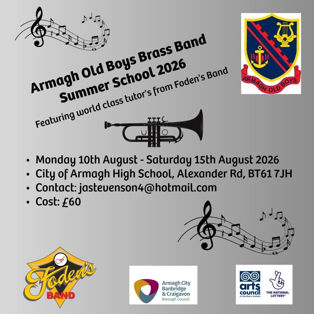 A number of our members will once again travel to Armagh, Northern Ireland in August to lead sectionals and full rehearsals on the 'Armagh Old Boys Brass Band Summer Course' which promises to be a great week of music, fun and friendship! The course is open to brass and percussionists regardless of age For further information contact Julie-Anne Stevenson - jastevenson4@hotmail.com Location: City of Armagh High School - Alexander Rd, BT61 7JH Dates: Monday 10th - Saturday 15th August 2026 Cost: £60.00 Apply Now: https://docs.google.com/.../1SqJIe0-o-SxUu3srz6.../edit